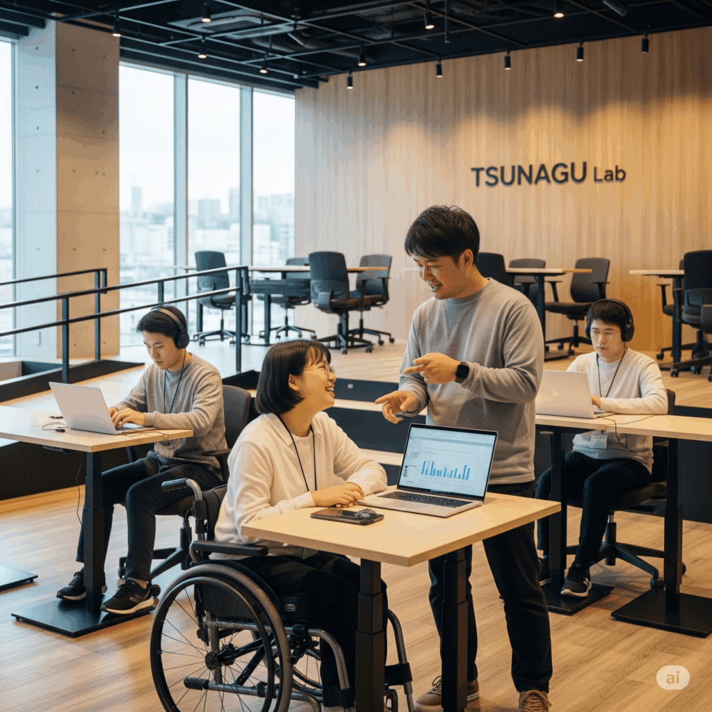 在宅学習をメインとするTSUNAGU Academyとの連動により、学んだスキルをリアルな環境で試しながら実務力を磨くことが可能です。TSUNAGU Labは、学びと実践、そして安心をつなぐ、企業と障害者双方にとって心強いパートナーです。